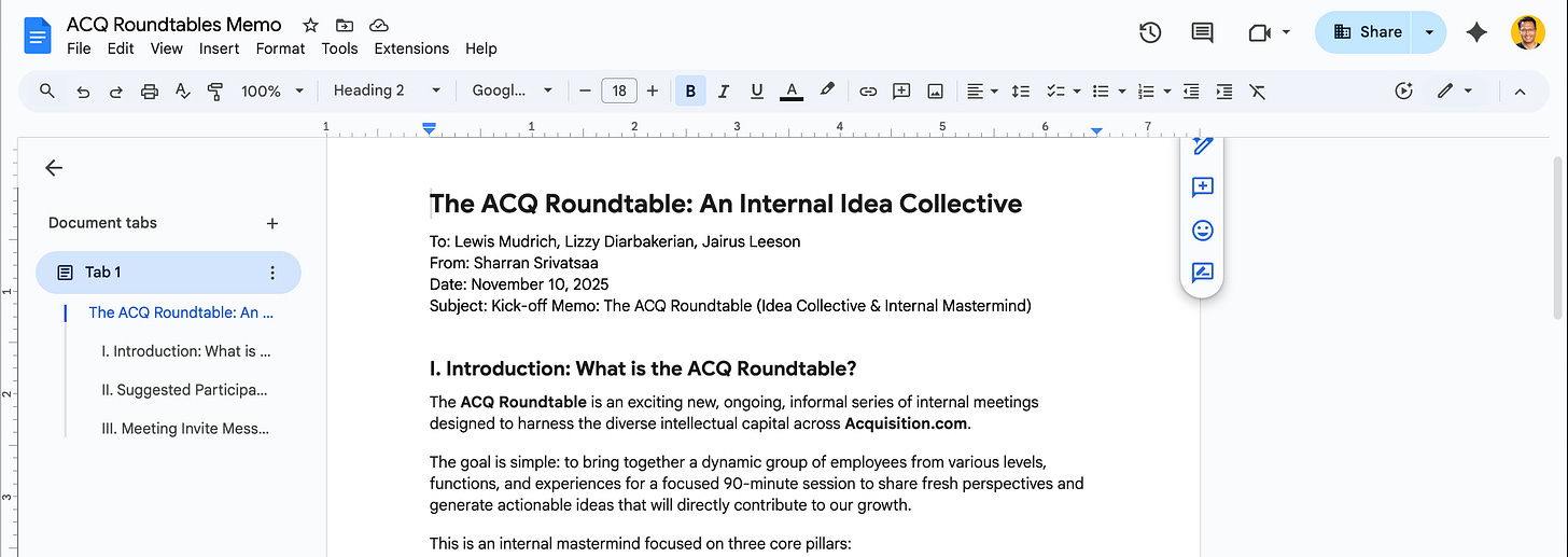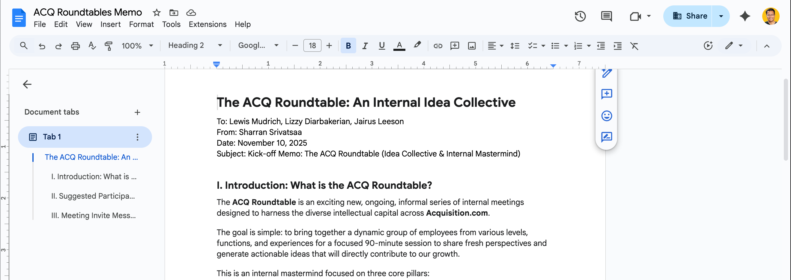 So, last week I sat down and wrote the memo to our team launching the idea of the ACQ Roundtable.